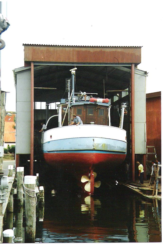 Slipanlage auf zwei einzelnen Wagen für Schiffe bis zu 65 t und 3,00 m Tiefgang. Zwei feste Lagerpunkte für den Kiel, in der Länge verstellbar, seitlich abgestützt durch zwei Rungen, die mit Gewindespindeln stufenlos einstellbar sind.